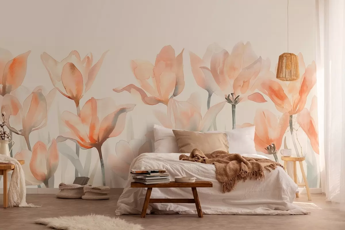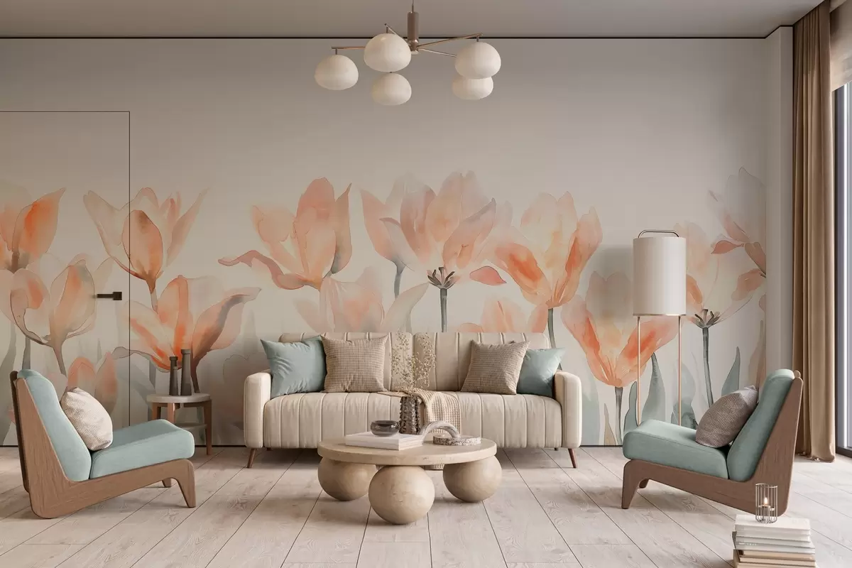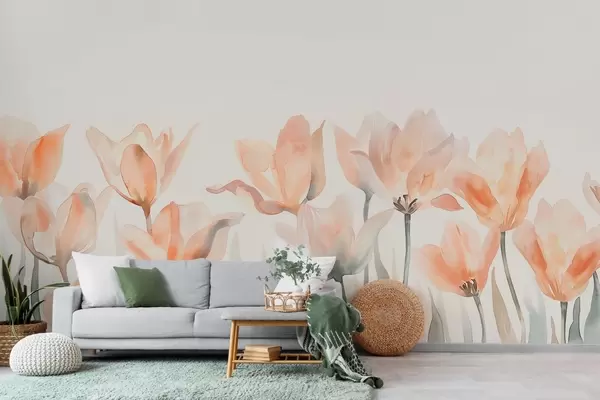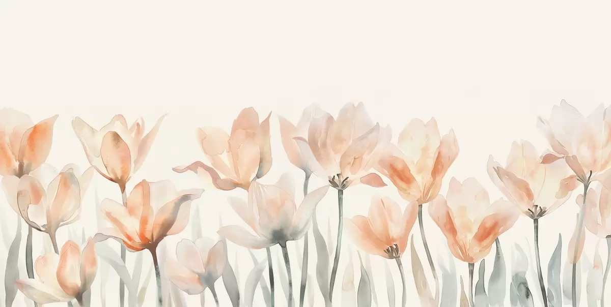 Fototapetes svaigas akvareļu tulpes, kas aug no apakšas Nr. w04204