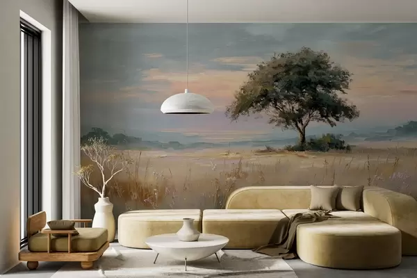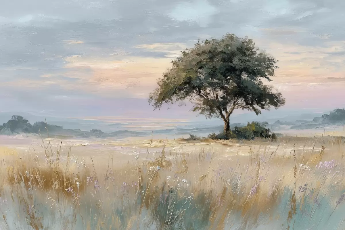 Fototapetes koks lauka vidū eļļas glezniecības stilā Nr. w04206