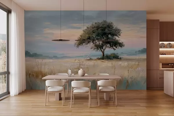 Fototapetes koks lauka vidū eļļas glezniecības stilā Nr. w04206