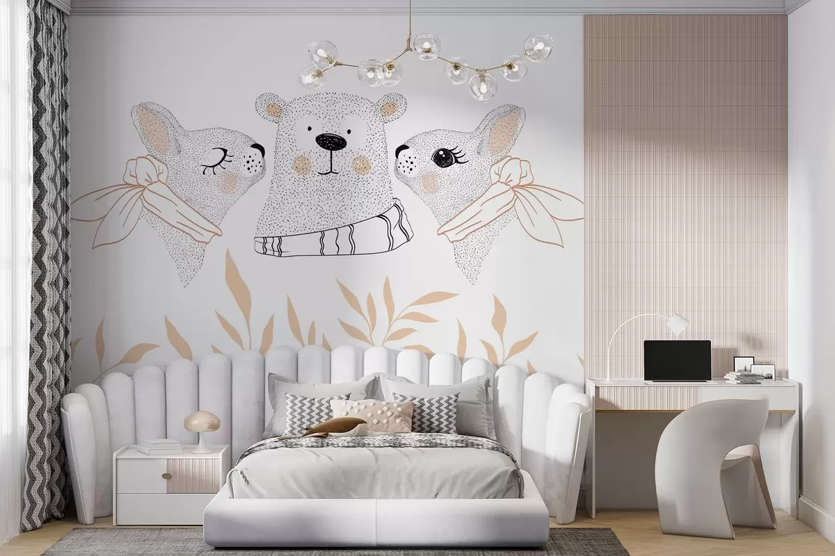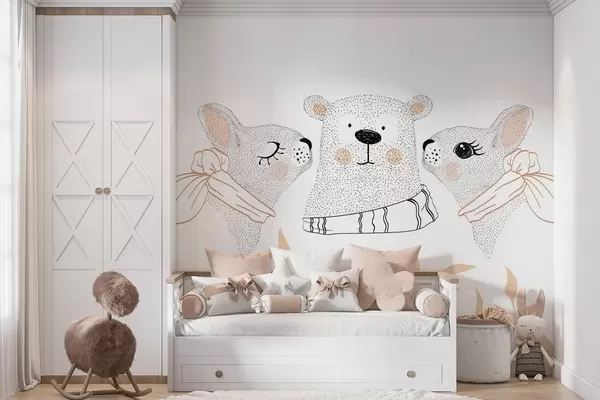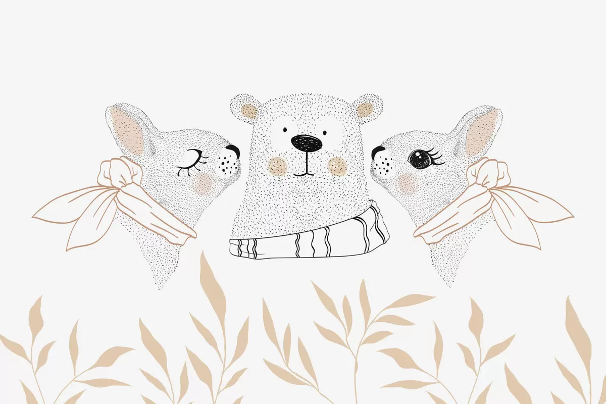 Fototapetes Smieklīgi dzīvnieki, zaķi un lācēns Nr. w04269