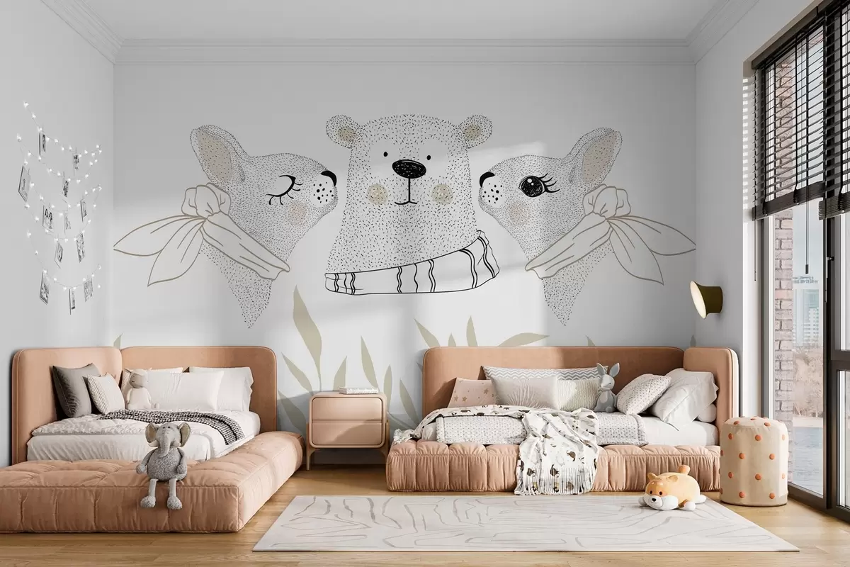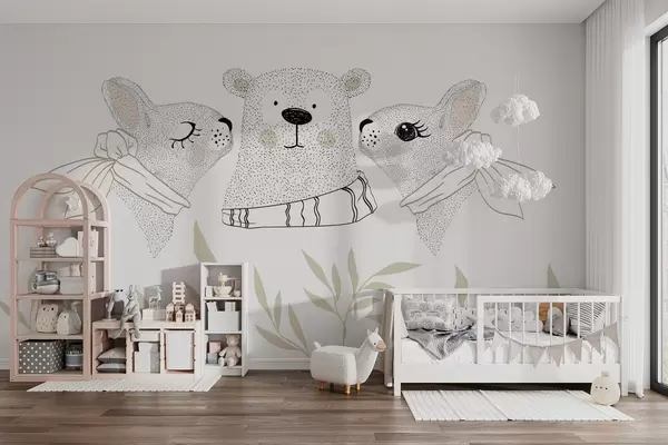 Fototapetes Smieklīgi dzīvnieki, zaķi un lācēns Nr. w04269v1