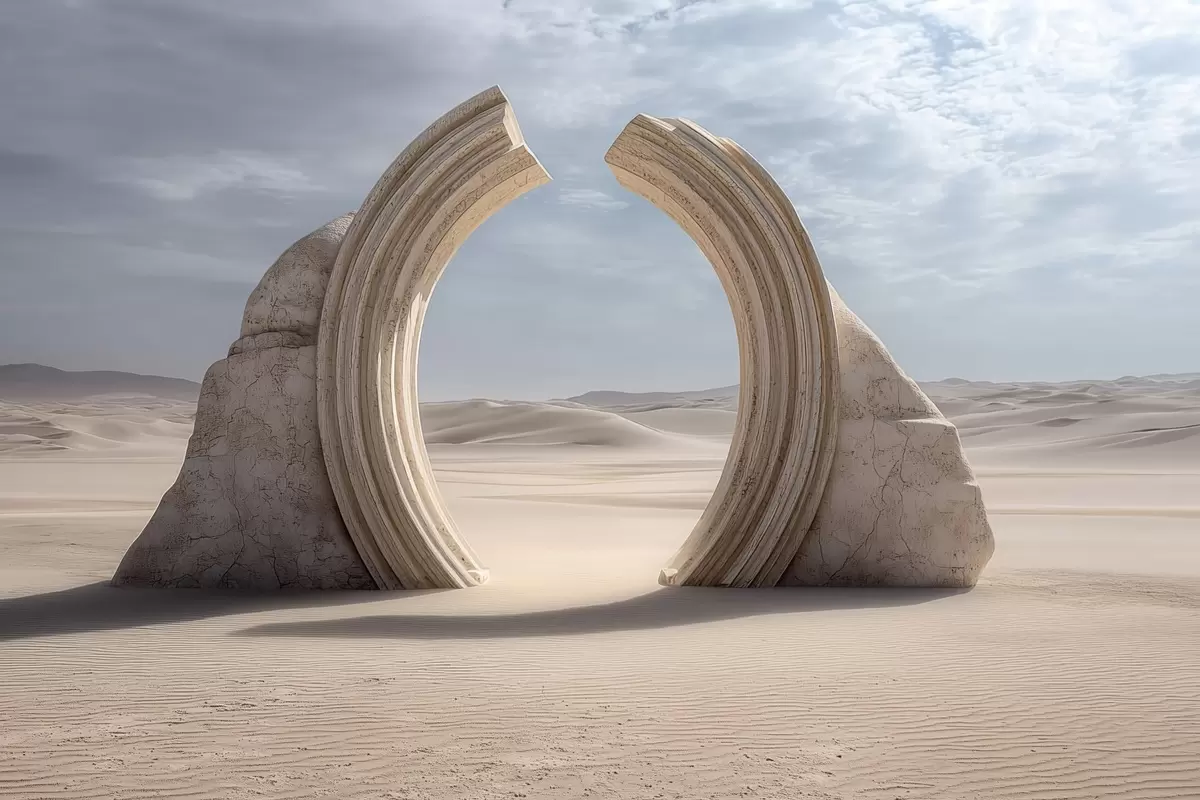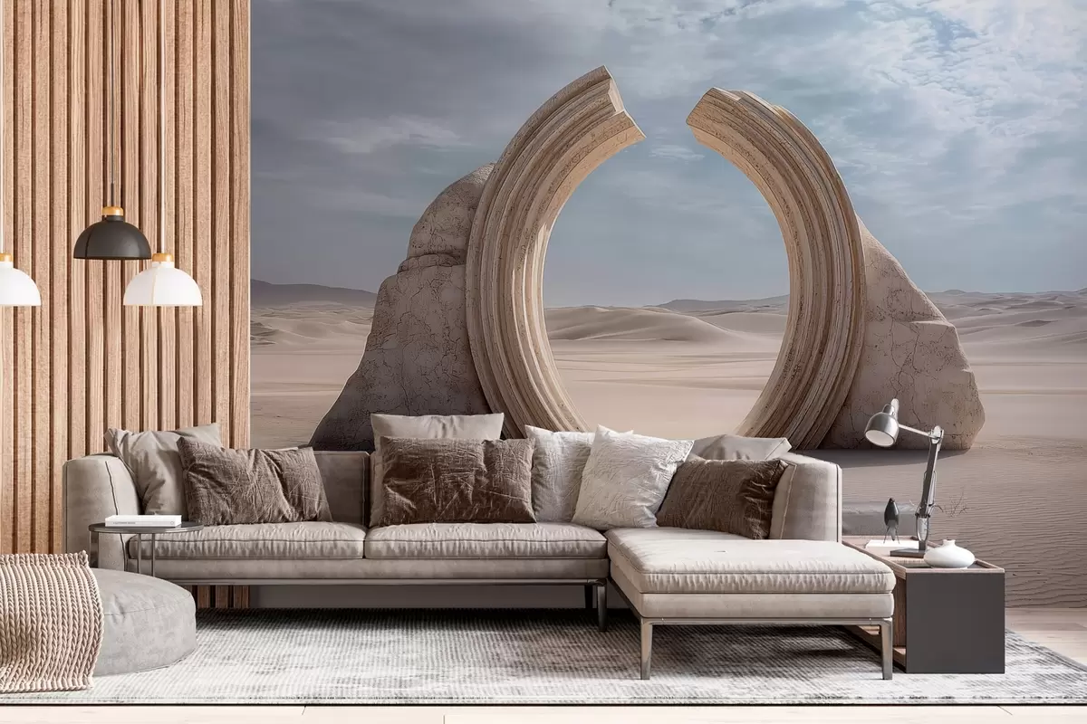 Fototapetes sirreālistiska tuksneša ainava ar lielu arhitektūras arku Nr. w04284