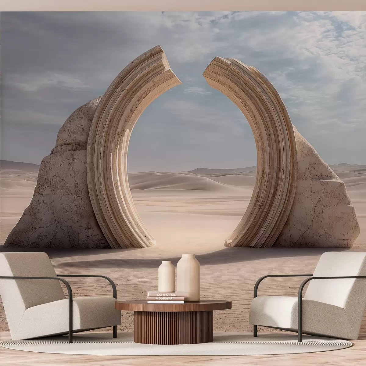 Fototapetes sirreālistiska tuksneša ainava ar lielu arhitektūras arku Nr. w04284
