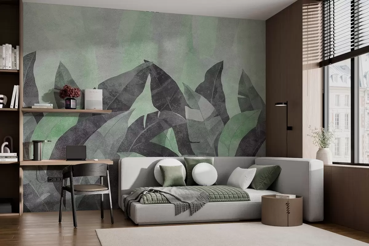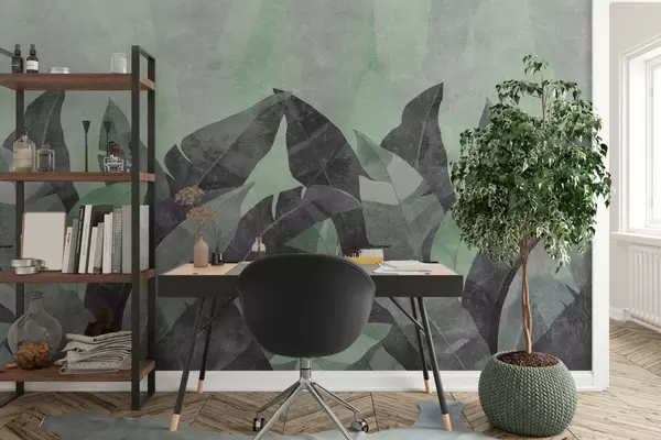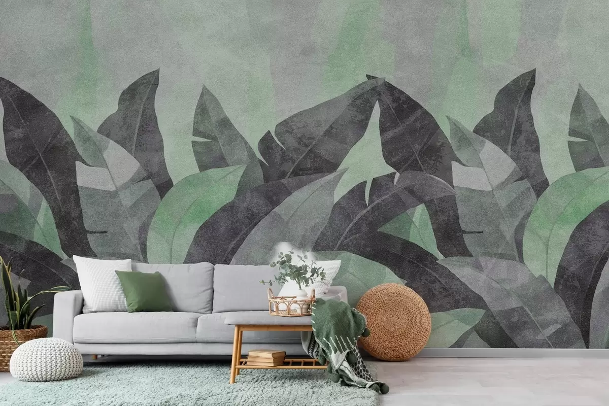 Fototapetes banānu lapu tekstūra zaļos un pelēkos toņos Nr. w04285v1