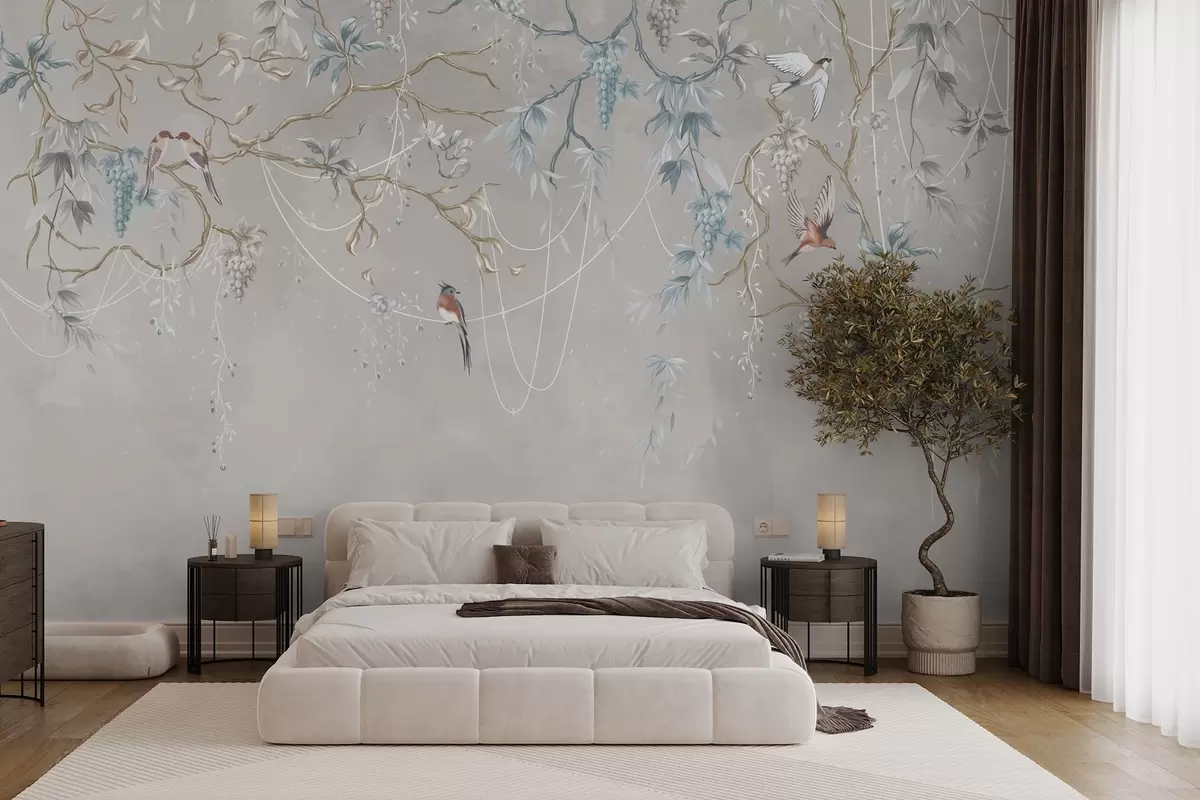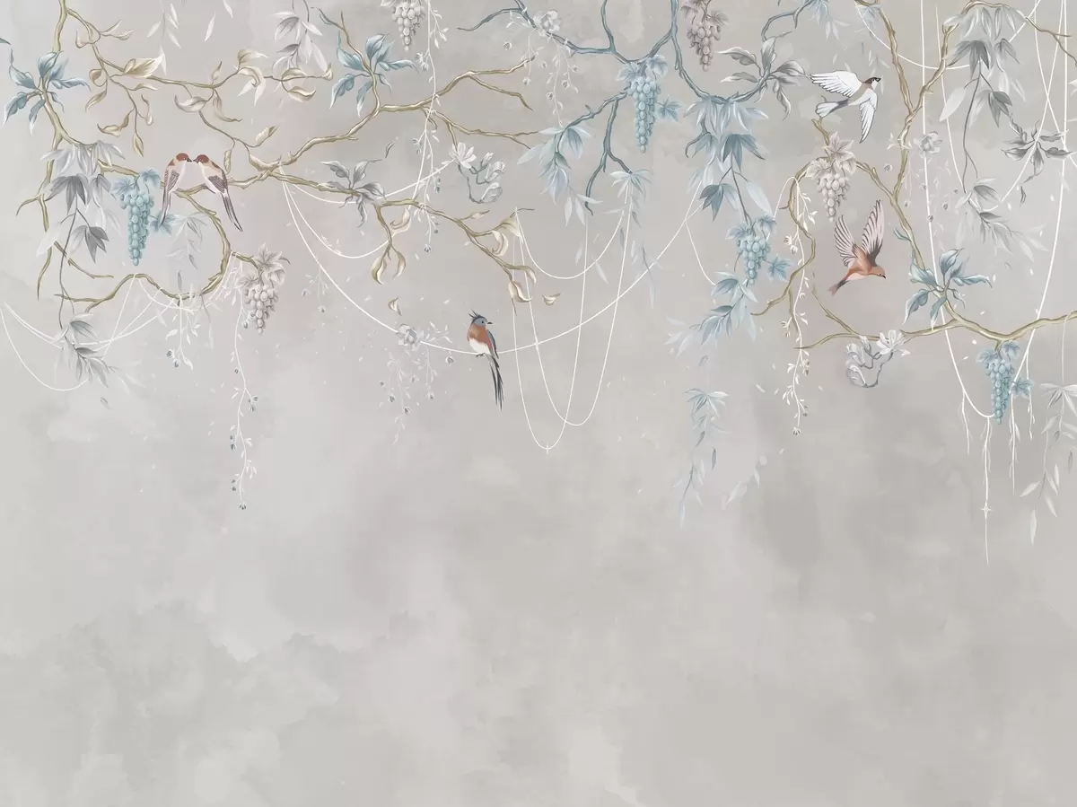 Fototapetes Variants ar ļoti gaišu fonu un ziliem akcentiem Nr. w04302v2
