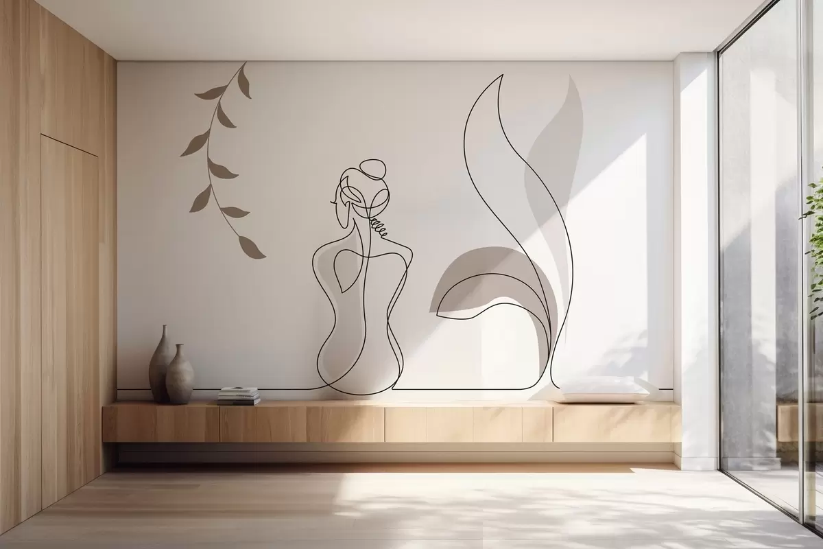Fototapetes lineārs sievietes siluets un lapas Nr. w04303