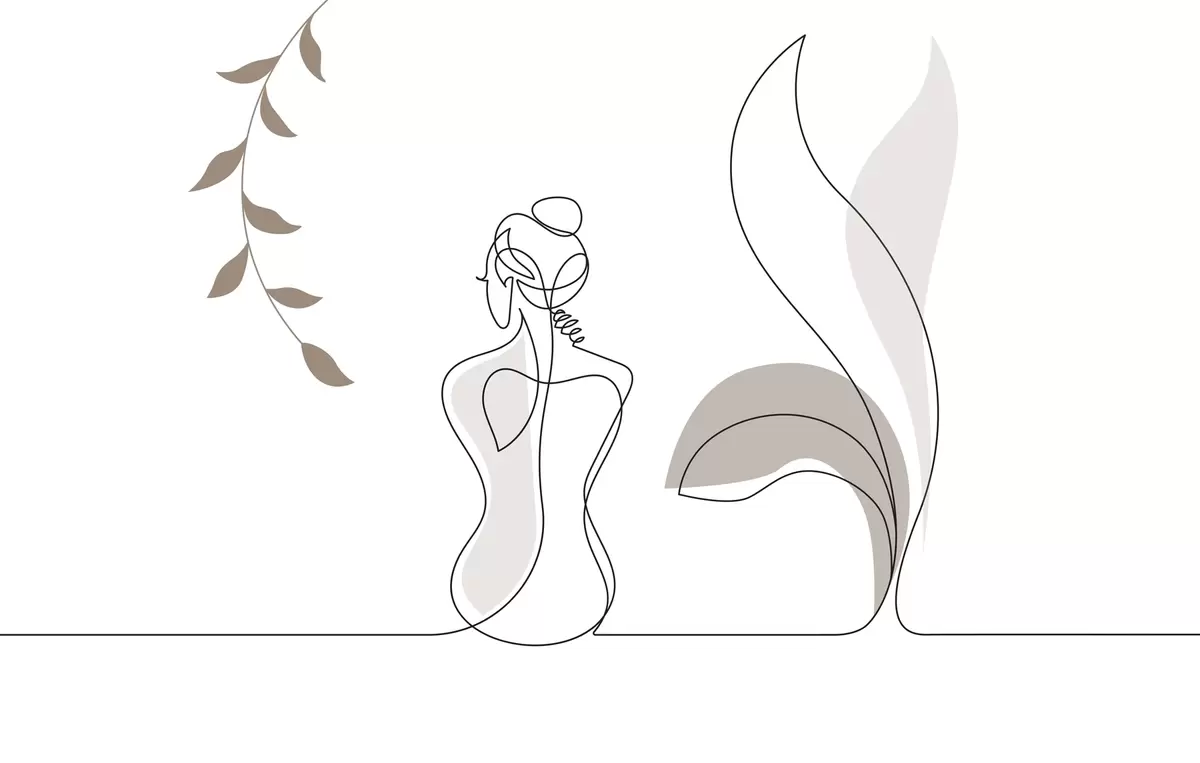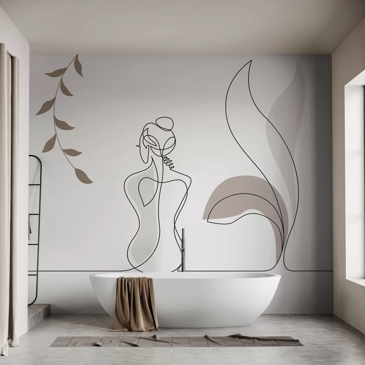 Fototapetes lineārs sievietes siluets un lapas Nr. w04303