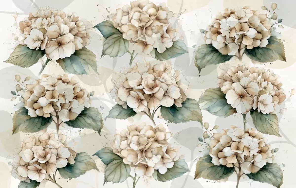Fototapetes lielas hortenzijas akvareļu stilā Nr. w04312