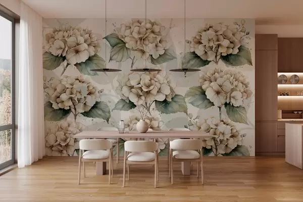 Fototapetes lielas hortenzijas akvareļu stilā Nr. w04312