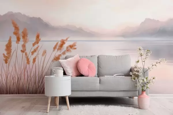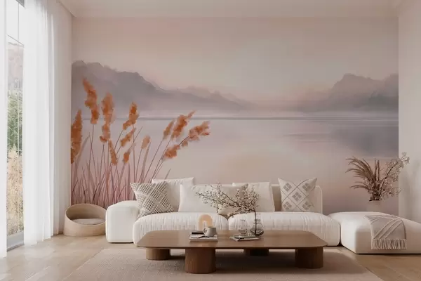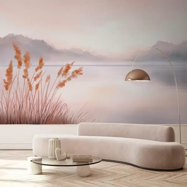 Fototapetes gleznains ezers ar niedrēm un kalniem Nr. w04315