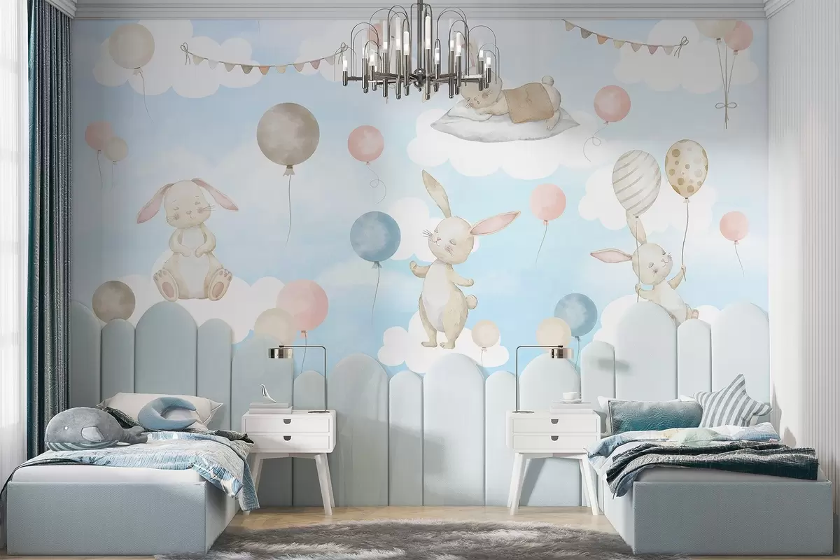 Fototapetes Truši ar baloniem uz mākoņiem Nr. w04337