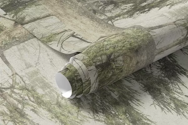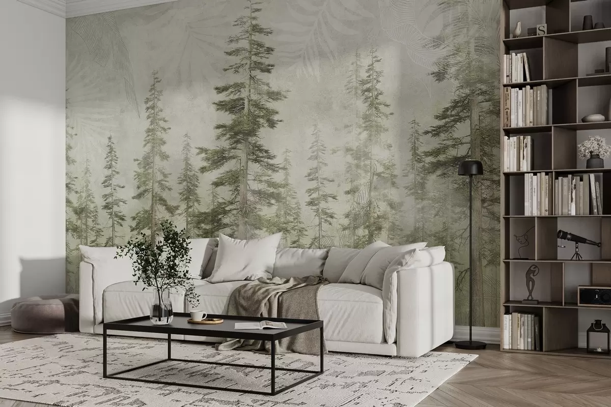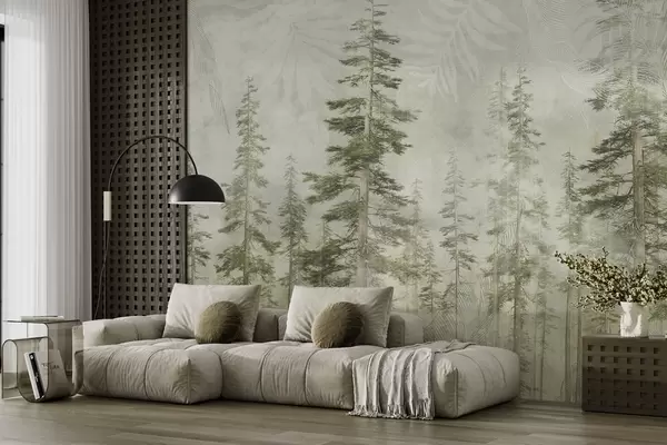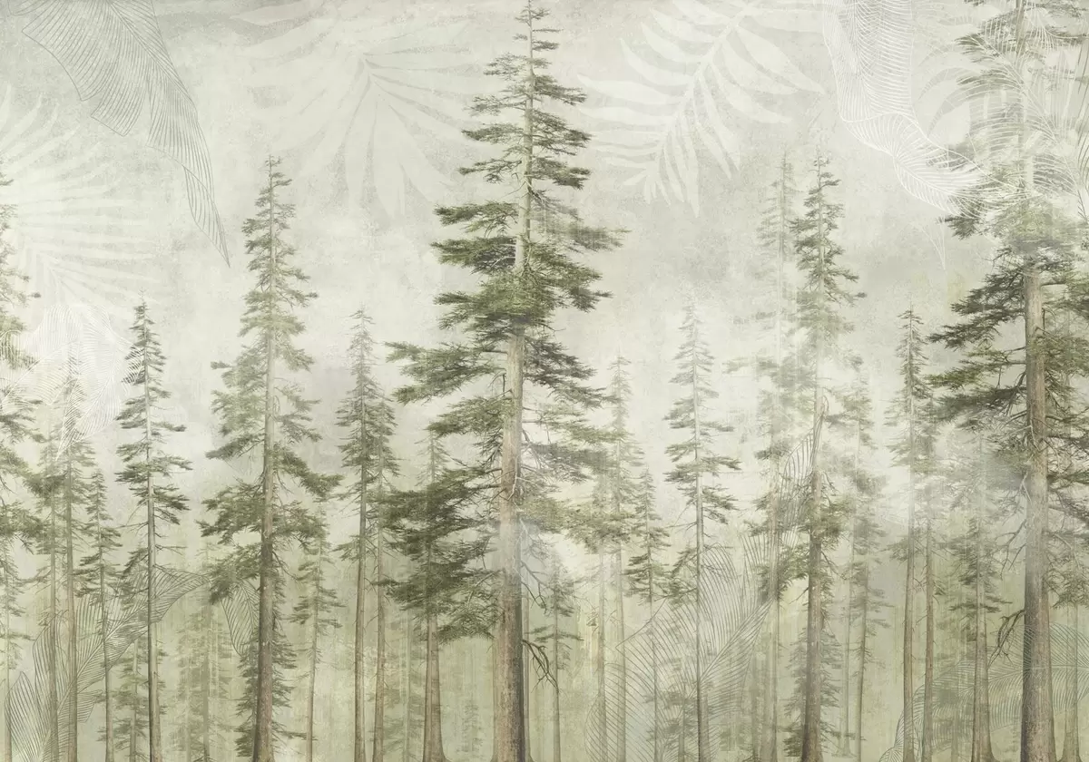 Fototapetes Priežu mežs ar vintage papīra tekstūru un smalkiem rakstiem Nr. w04342