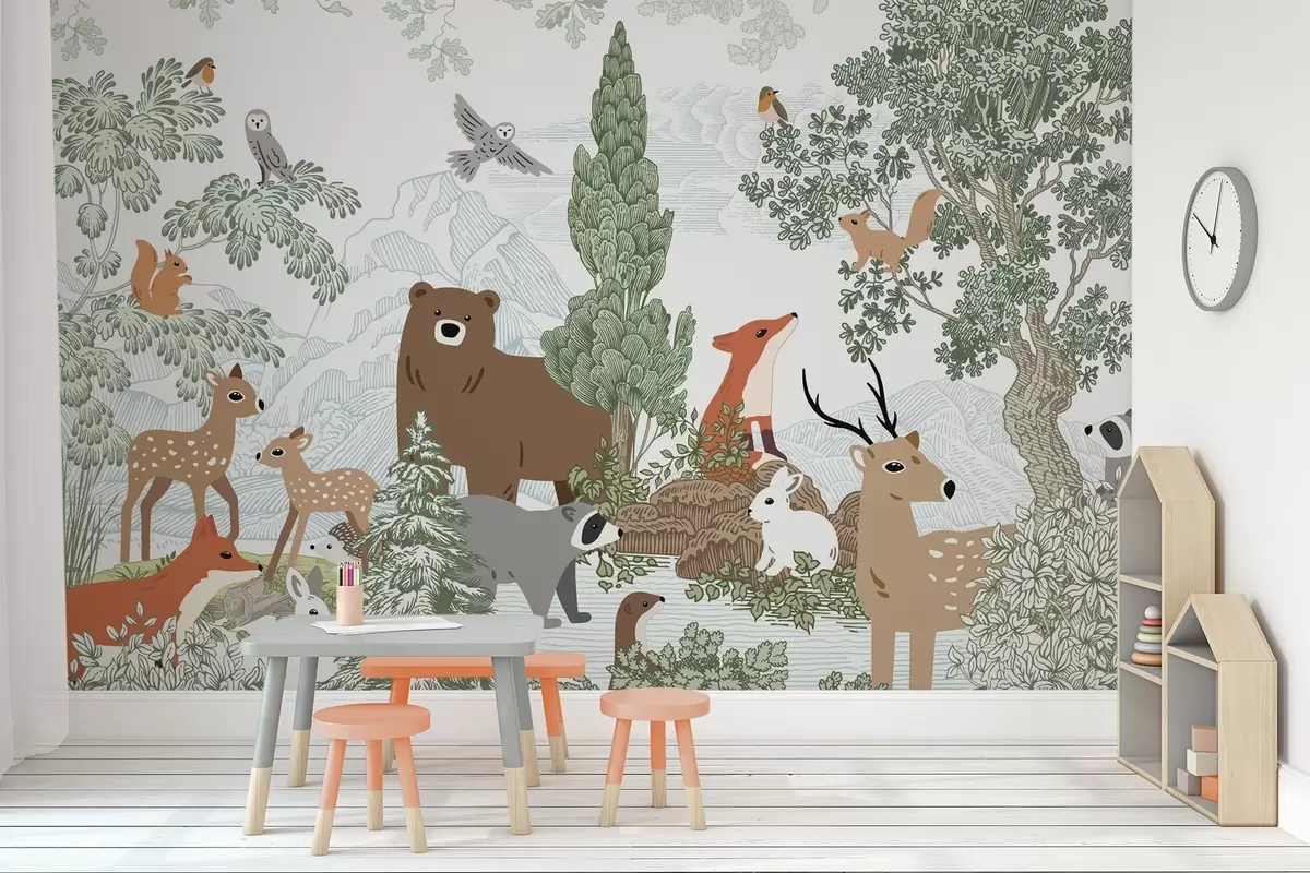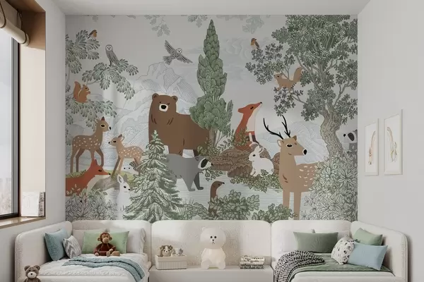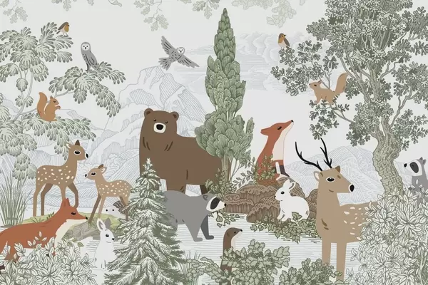 Fototapetes Dzīvnieki un putni mežā Nr. w04383