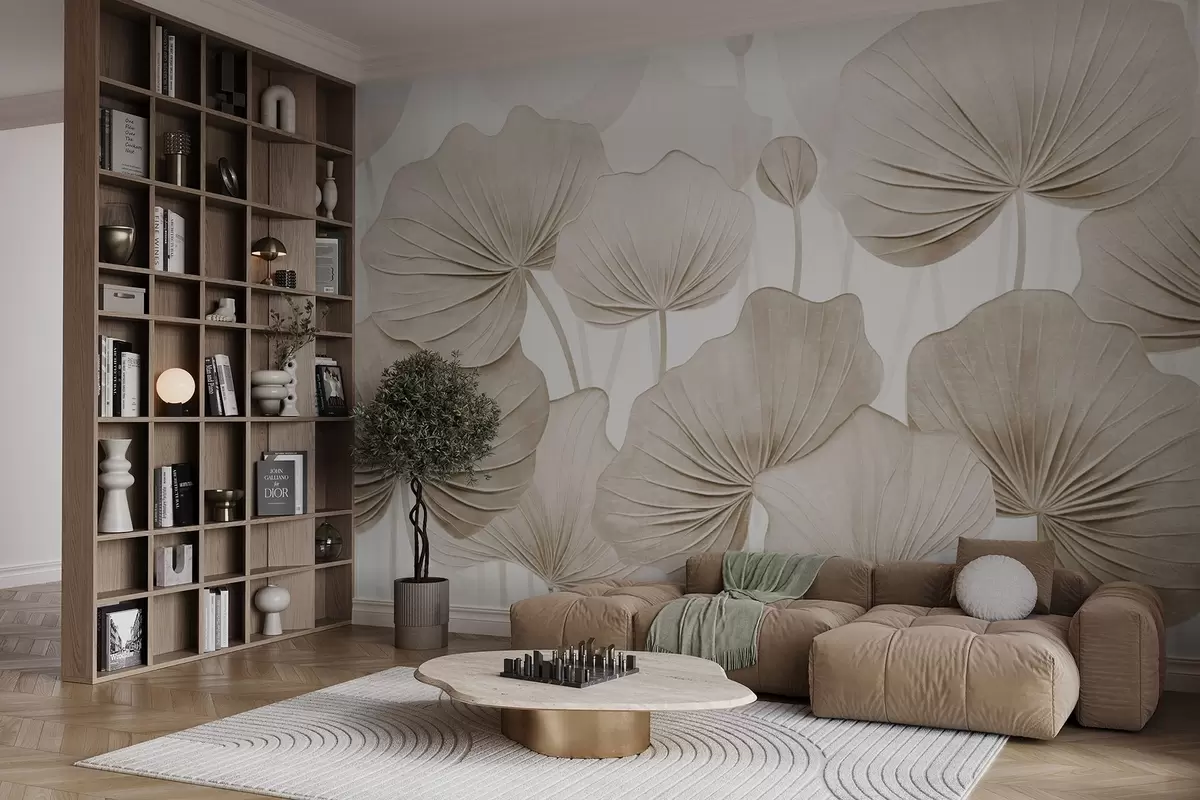 Fototapetes Lotosa lapas ar imitētu noskumušu tekstūru Nr. w04412v1