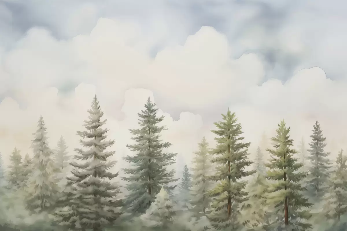 Fototapetes Skujkoku meža imitācijas glezna Nr. w04414