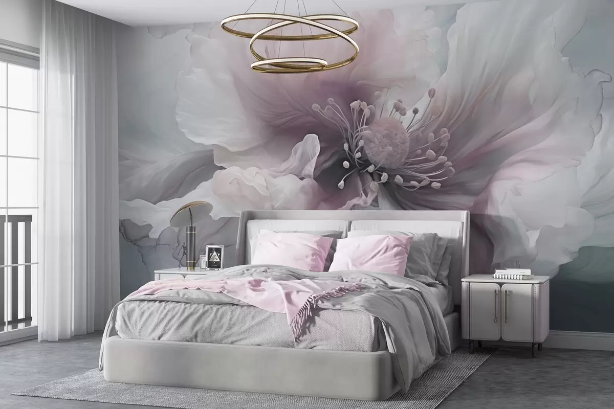 Fototapetes Smalks zieds ar rozā un baltām ziedlapiņām Nr. w04446