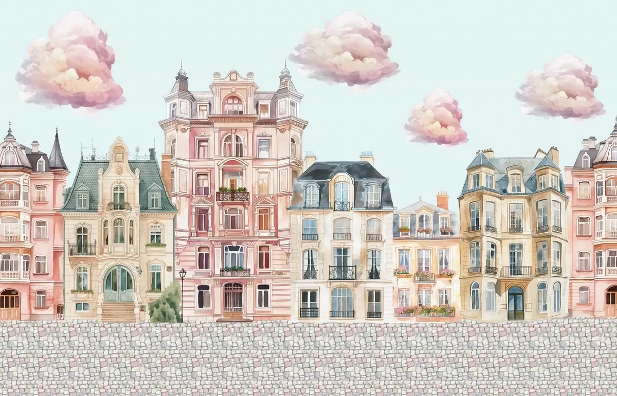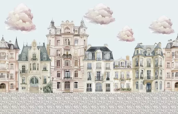 Fototapetes Krāsainas mājas, mākoņi Nr. w04474