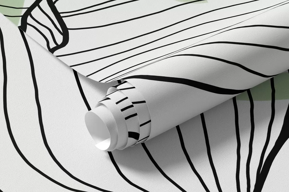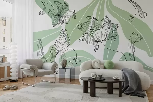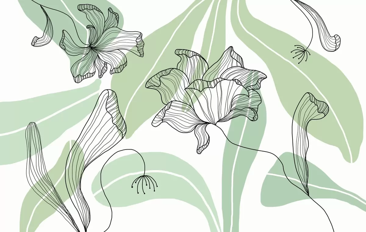 Fototapetes abstrakcijas lapas un ziedi zaļos toņos Nr. w04499v1