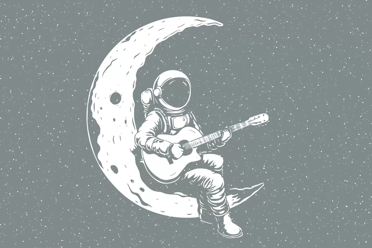 Fototapetes Kosmonauts, mēness, ģitāra Nr. w04514v1