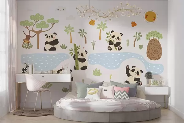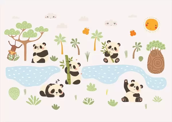 Fototapetes Priecīgi pandas pie upes Nr. w04541