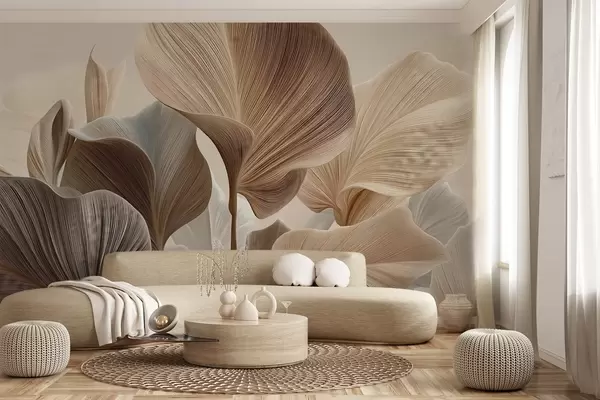 Fototapetes Eleganti smilškrāsas lapas ar smalku lineāru tekstūru Nr. w04549