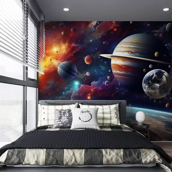 Fototapetes Krāsains kosmos ar planētām un miglājiem Nr. w04576