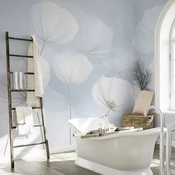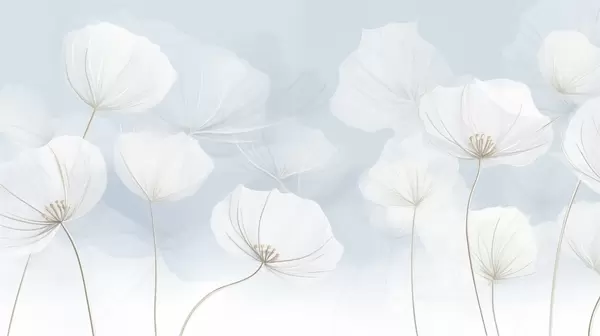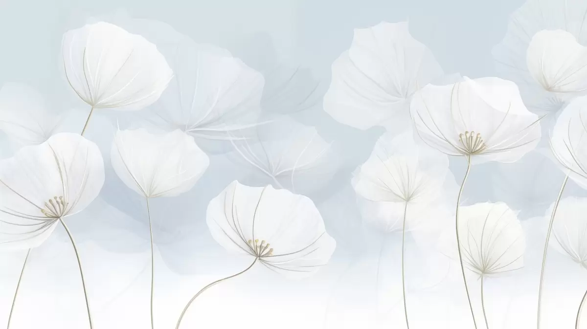 Fototapetes Gaisīgi balti ziedi uz zila fona Nr. w04580