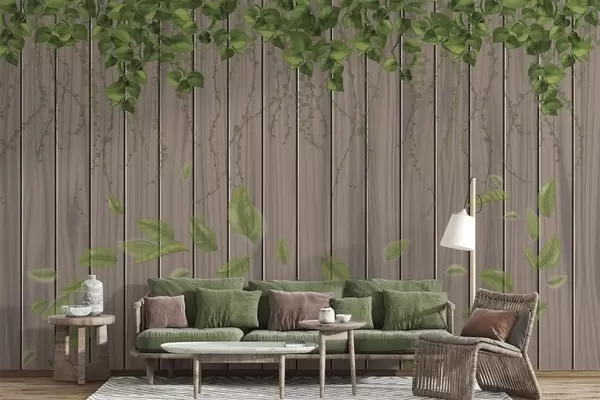 Fototapetes Imitācijas koka dēļi ar karājošām lapām Nr. w04603