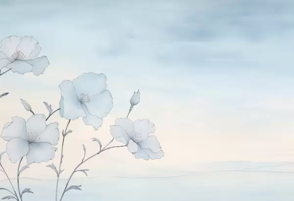Fototapetes Maigi zili ziedi pret gaisīgu debesi Nr. w04620