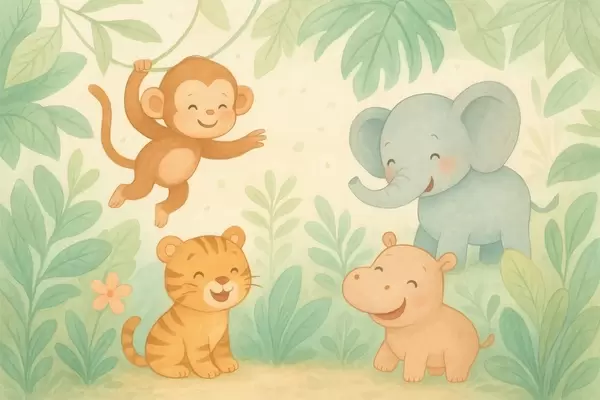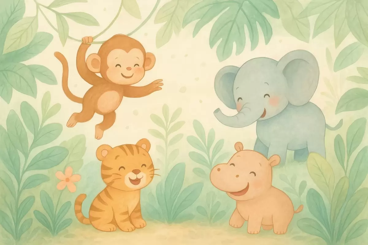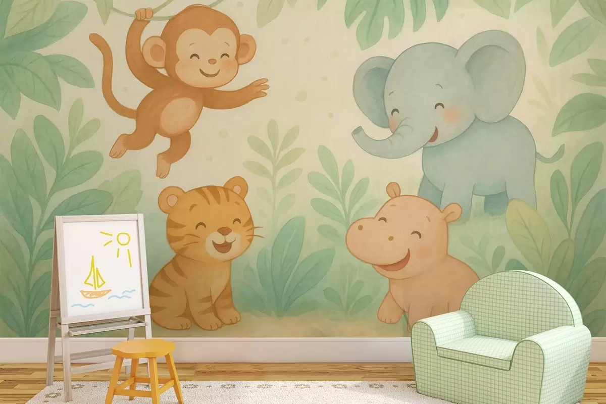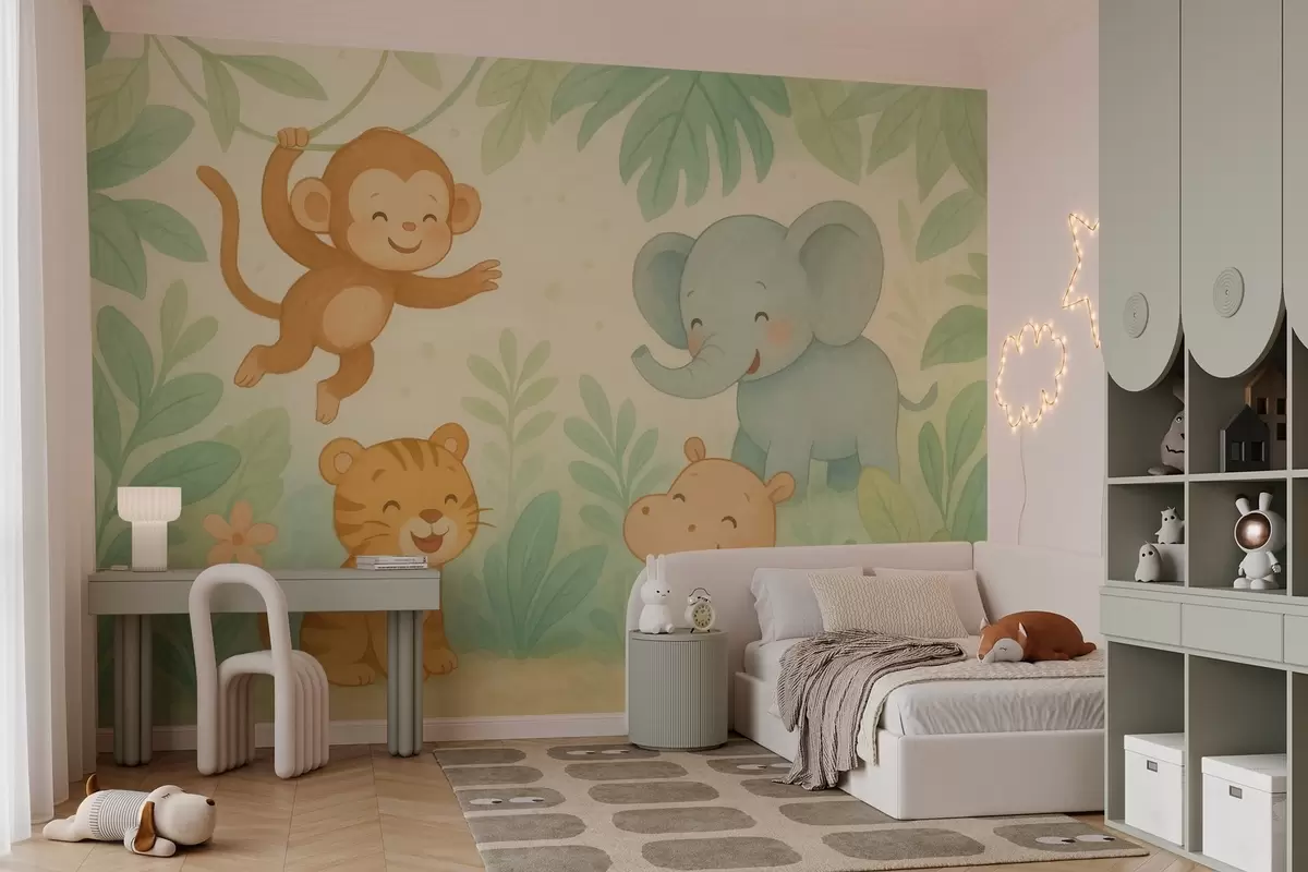 Fototapetes mīlīgi dzīvnieku mazuļi džungļos Nr. w04622
