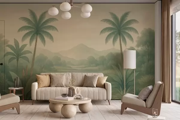 Fototapetes tropu ainava ar palmu kokiem un upi Nr. w04623
