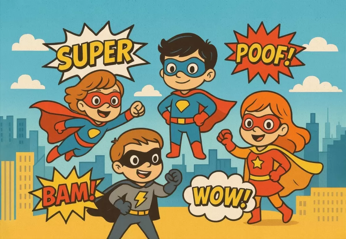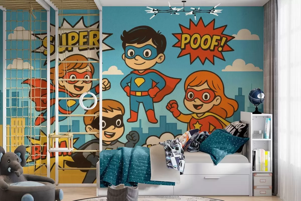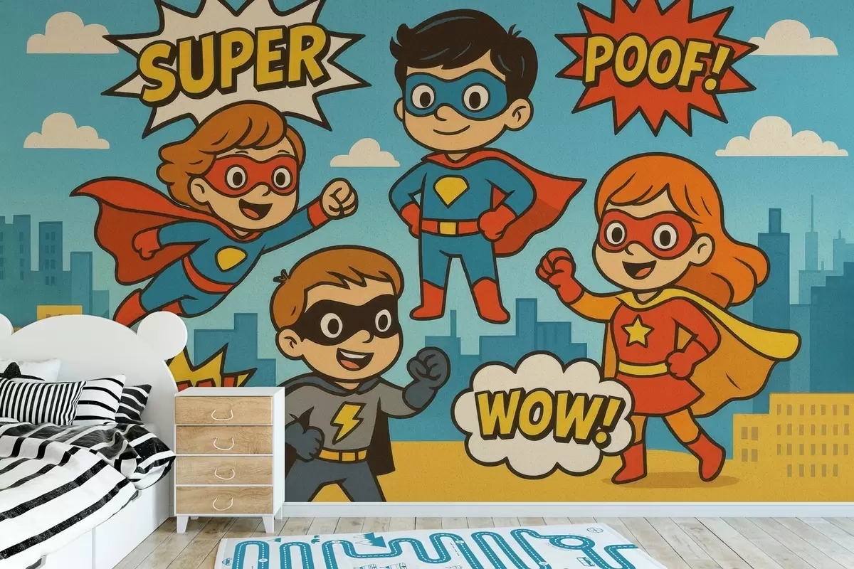 Fototapetes smieklīgi komiksu stila supervaroņi Nr. w04625
