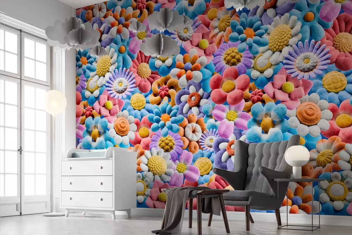 Fototapetes spilgti pūkaini ziedi Nr. w04626