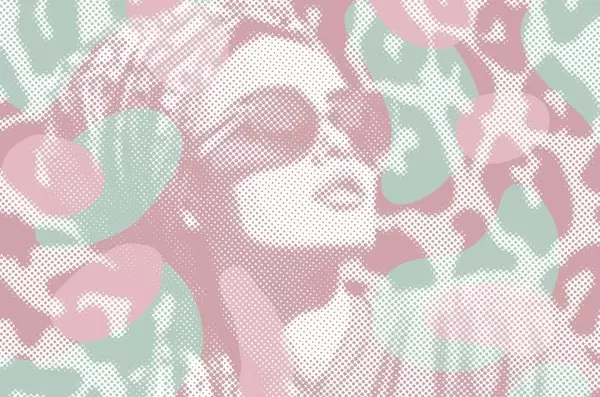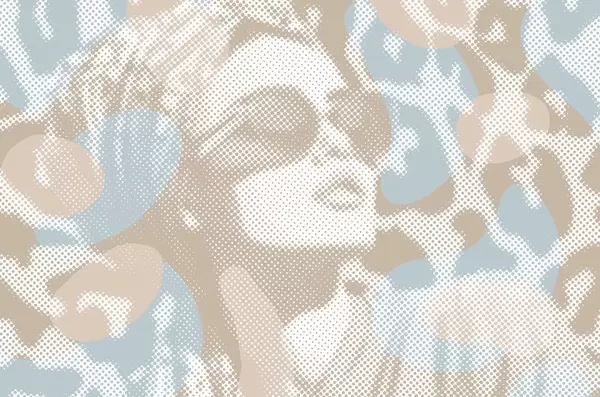 Fototapetes sievietes portrets uz leoparda fona punktveida stilā smilškrāsas un zilos toņos Nr. w04630