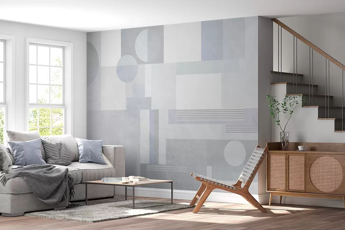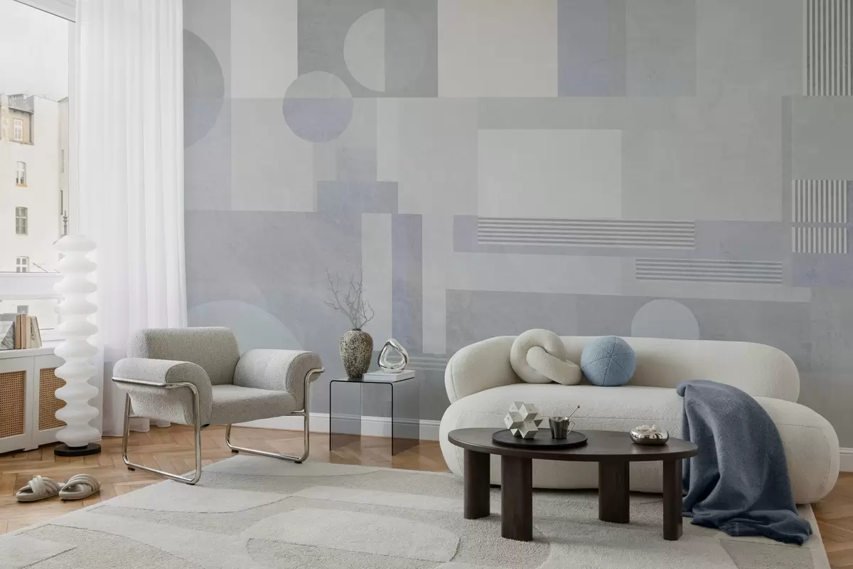 Fototapetes abstrakta ģeometrija pelēkā un zilā toņos Nr. w04635v2