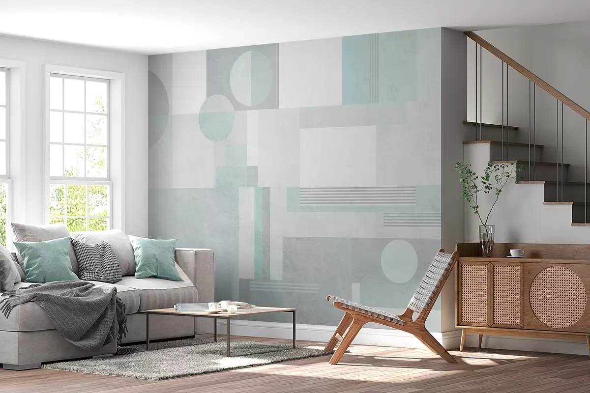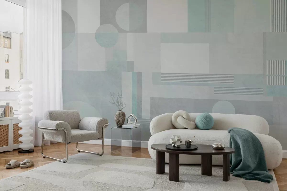 Fototapetes abstrakta ģeometrija pelēkzaļos toņos Nr. w04635v3