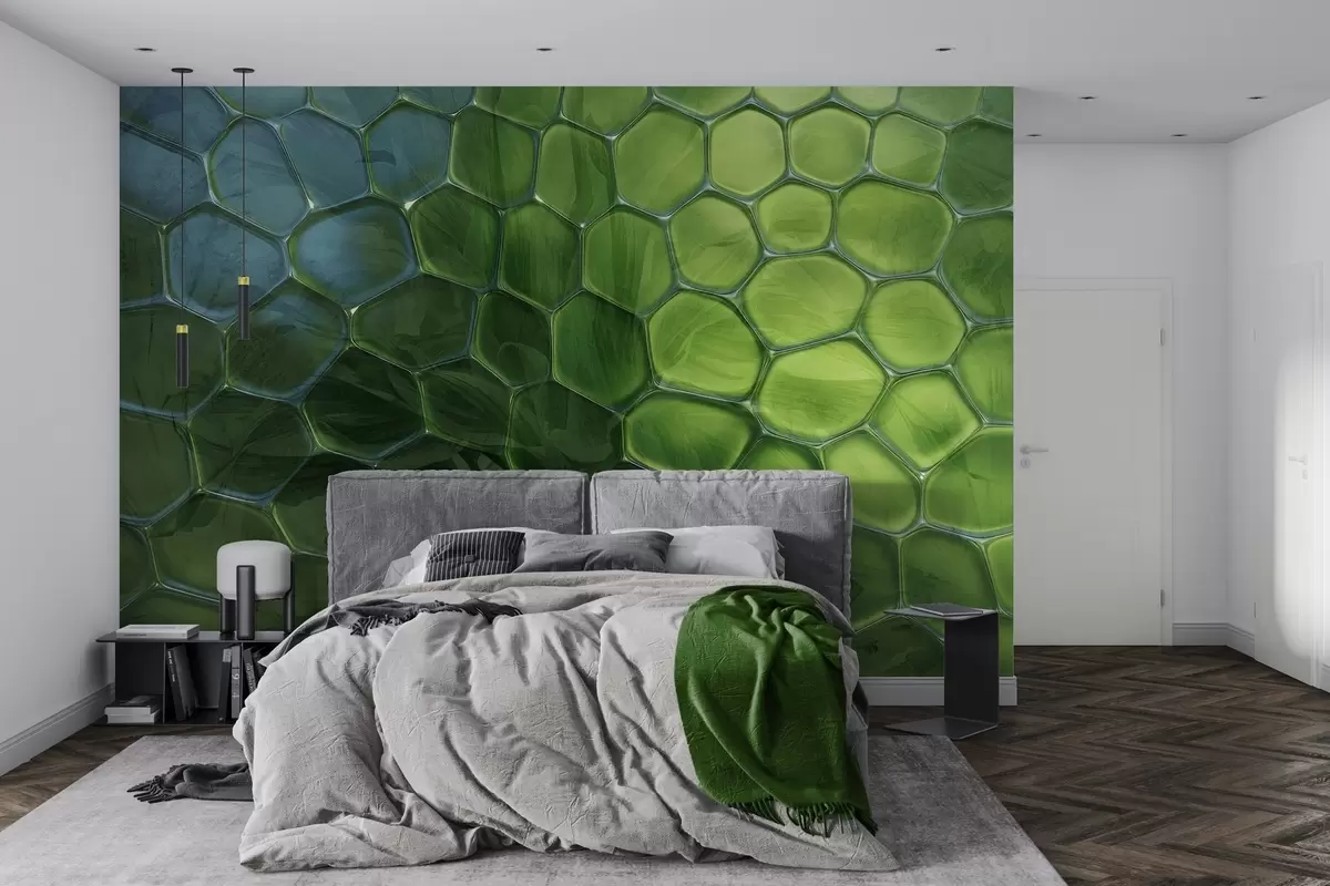 Fototapetes Lapas caur stikla šūnu struktūru Nr. w04667