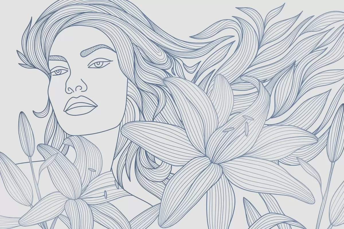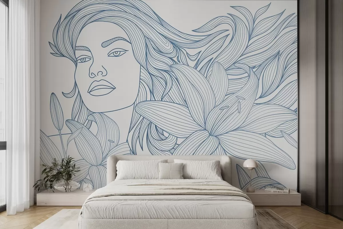 Fototapetes Meitenes portrets liliju ziedu zilajos toņos Nr. w04689v2