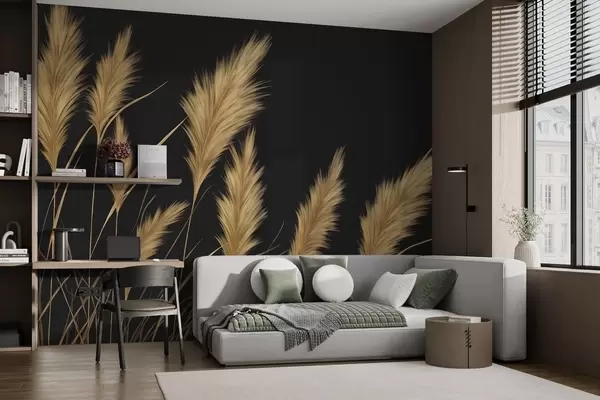 Fototapetes Pūkainas kviešu vārpas uz tumša fona w04734