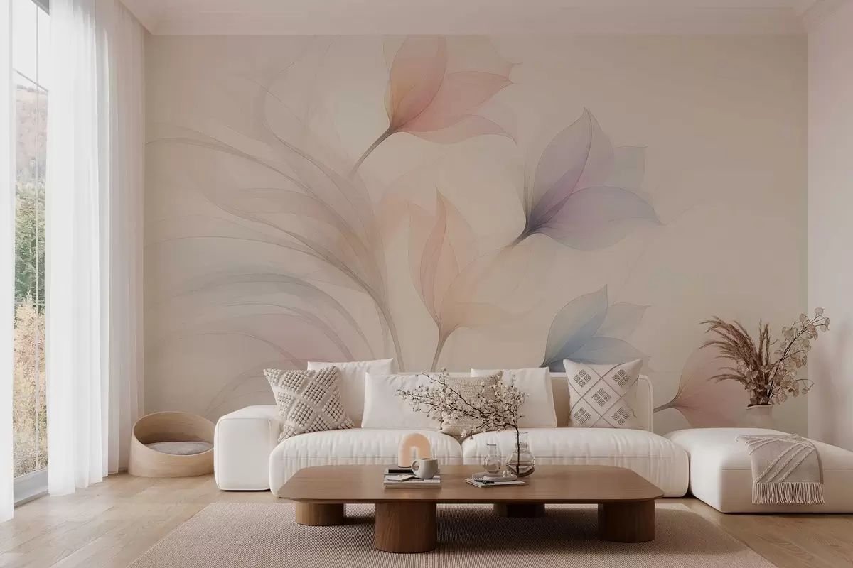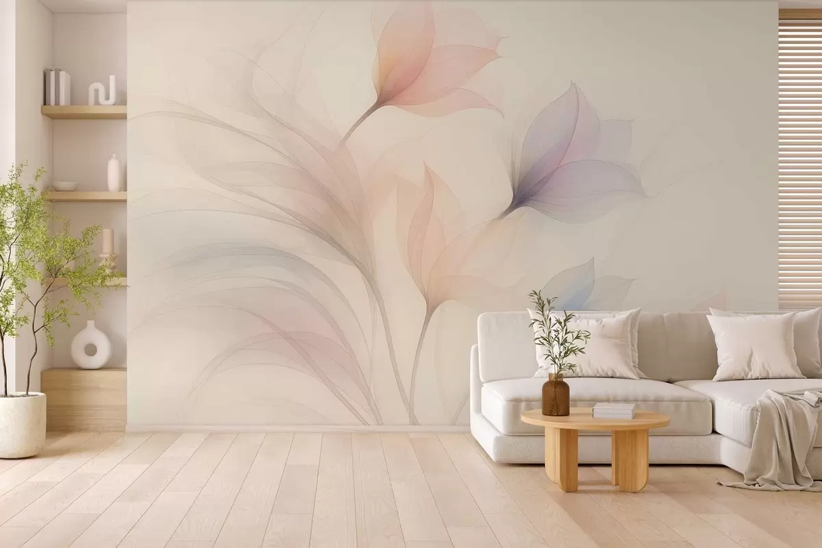 Fototapetes delikāti puscaurspīdīgi tulpes uz smilškrāsas fona Nr. w04754