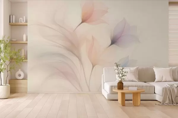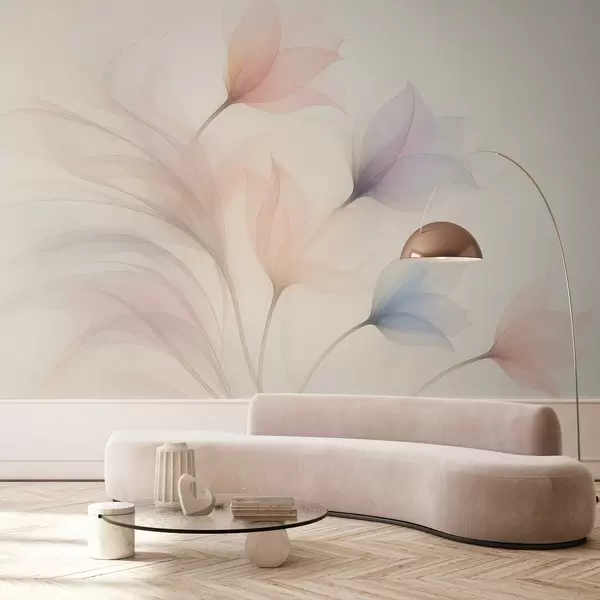 Fototapetes delikāti puscaurspīdīgi tulpes uz smilškrāsas fona Nr. w04754