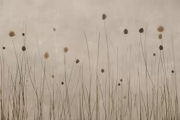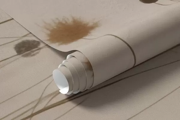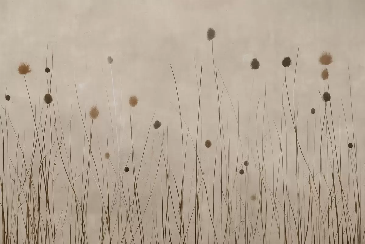 Fototapetes Plānas zāles un pūkainas sēklu galviņas uz siltā smilškrāsas fona Nr. w04793