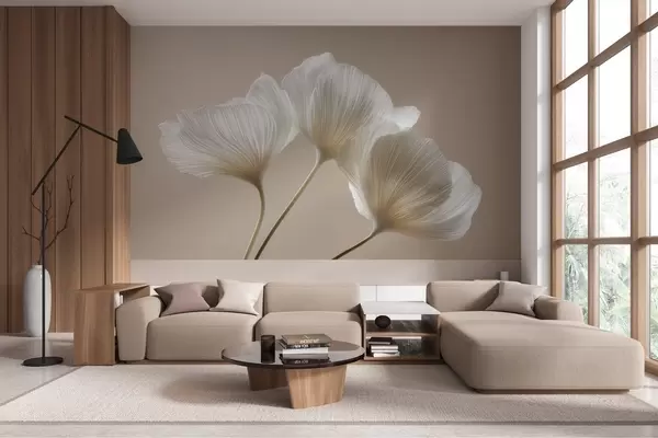 Fototapetes trīs delikāti ziedi uz smilškrāsas fona Nr. w04810