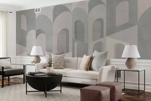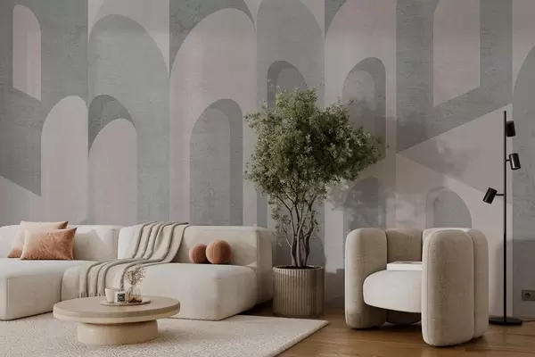 Fototapetes pilsētas metamorfozes arkas pulverveida pelēkajos toņos Nr. w04812