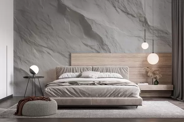 Fototapetes balta akmens imitācija interjera dizainā Nr. w04818