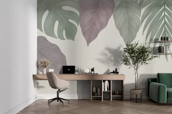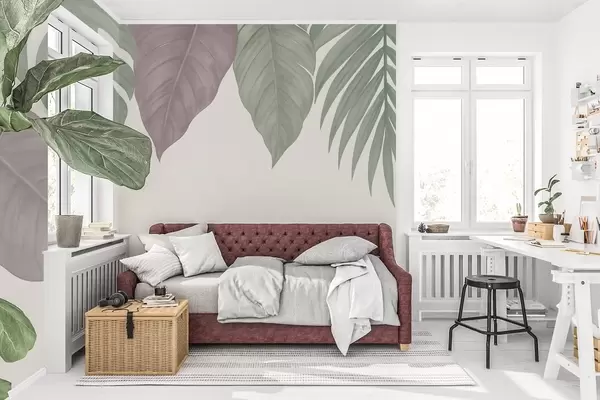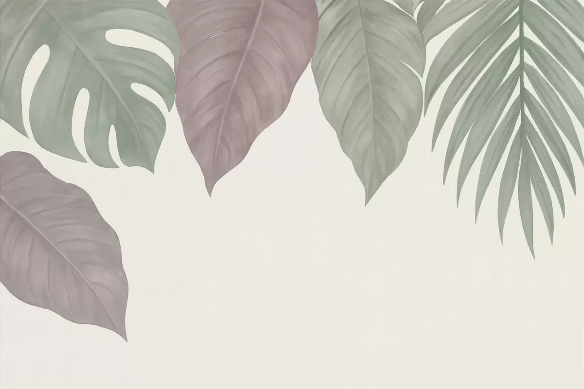 Fototapetes lieli tropu lapas vienkāršā stilā, no augšas Nr. w04819