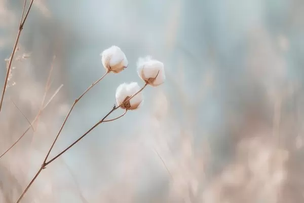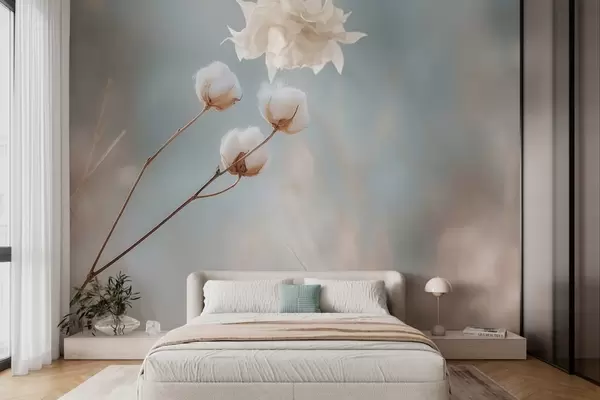 Fototapetes trīs kokvilnas ziedi uz izplūduša fona Nr. w04820