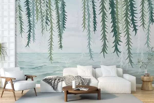 Fototapetes Delikātas vīnogulāju vīnogulāji, kas karājas virs ūdens akvareļa stilā Nr. w04830