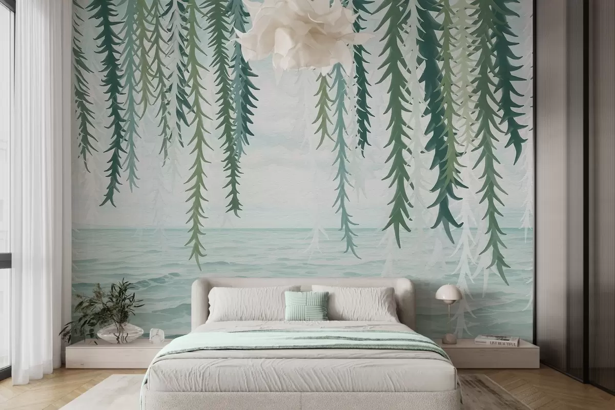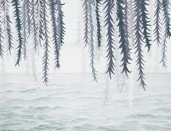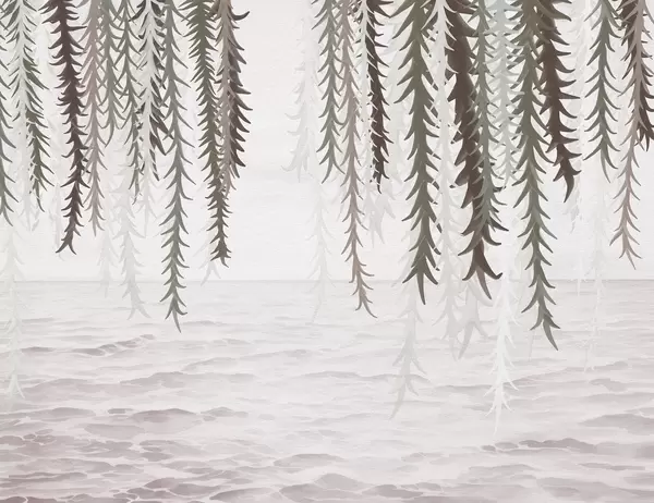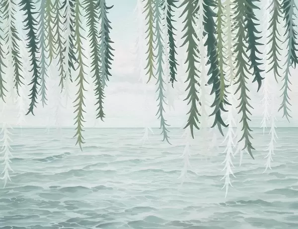 Fototapetes Delikātas vīnogulāju vīnogulāji, kas karājas virs ūdens akvareļa stilā Nr. w04830