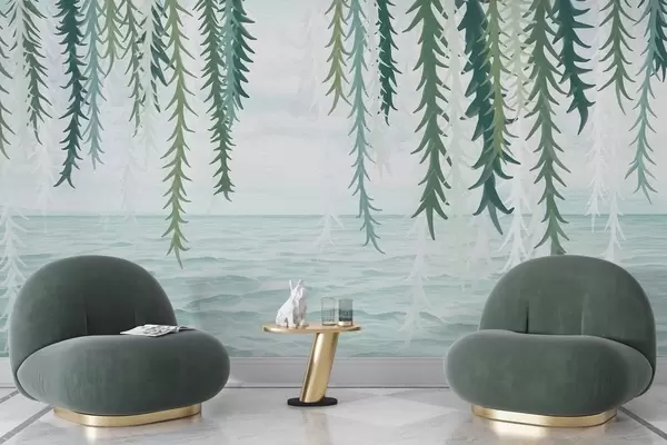 Fototapetes Delikātas vīnogulāju vīnogulāji, kas karājas virs ūdens akvareļa stilā Nr. w04830
